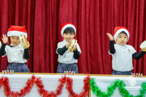 また日本語でのプレゼンテーションにも取り組み、小学校進学を見据えた自己紹介や、自分が書いたもの・作ったものについて『どう伝えるか』を考えながら発表する経験を積み重ねていきます。